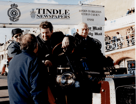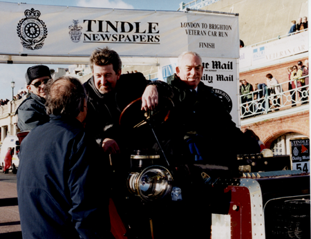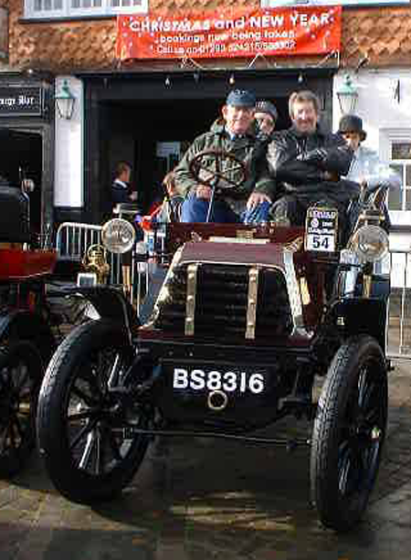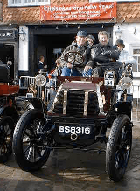 In 2002 the Jaguar Daimler Heritage Trust invited the DLOC to drive one of their veteran cars on the London to Brighton run. A full days instruction preceded the event, the tuition included the starting procedure, which is very different from the motor cars of today. An early start on a cloudy November morning was followed by an interesting stop, start journey through London. Acceleration is very slow, and we found ourselves overtaking and being overtaken by the same cars as the ancient runners stopped at red traffic lights and other obstructions. DLOC vice president Tony Bagley took the wheel for the first part of the journey.