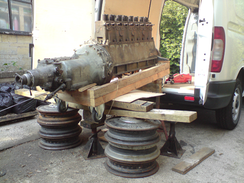 A full morning was spent lifting a huge engine and gearbox and hundreds of smaller parts into the back of the van, once back in Bristol the reverse procedure took even longer!