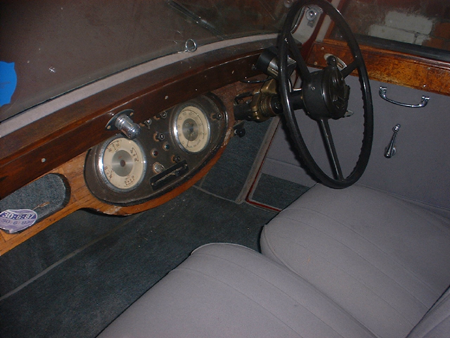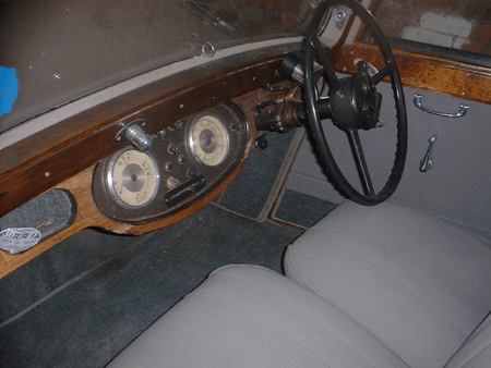 The coupe had been re-upholstered in grey Bedford cord, it would probably have had a leather finish when new, the cord suited it well. The E20 has a beam front axle with ‘cart springs’ to the rear, the steering is very good, although a little heavy at parking speeds. An excellent touring car, but one that needs to be ‘driven’, if you like to drive with one hand on the wheel with the other out of the window, these cars will not suit, (in fact few large pre war cars will), they demand more attention than the post war models.