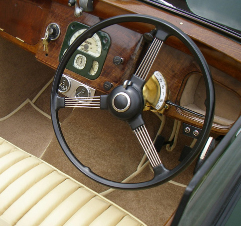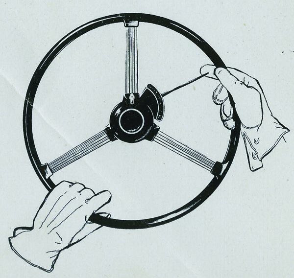 A word of warning, if you plan to start the engine using the starting handle, always double check that the gear engaged (not merely selected) is neutral. Operators have been pinned against the garage wall, sometimes fatally, when hand starting. With the the choke out and the hand throttle set at a fast idle, the car will simply move forward and keep going until it runs out of petrol.